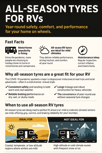 All-season tyres are a smart and versatile solution for many RV owners — delivering year-round convenience, comfort, and safety.