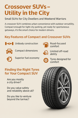The modern crossover SUV proves that you don’t have to choose between practicality and passion. With the right set of high-quality, purpose-built tyres, your vehicle can seamlessly transition from weekday commutes to weekend escapes — all while keeping you safe, efficient, and comfortable on every journey.