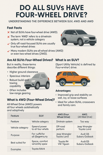 However, the confusion arises because in everyday conversation, people often use “4WD” and “SUV” interchangeably. In reality, these terms describe different things: