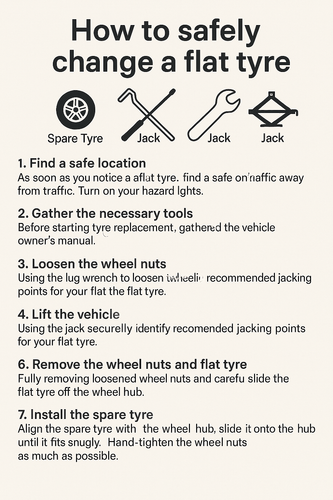 As soon as you notice a flat tyre, find a safe and level spot away from traffic. Turn on your hazard lights and engage the parking brake to ensure your vehicle remains stable throughout the process. If you have it, place a warning triangle a few metres from the car if there is traffic around you.