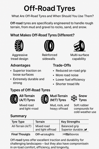 Off-road tyres give your vehicle the freedom to explore far beyond paved roads — through mud, sand, and snow. However, they come with compromises in comfort, fuel efficiency, and longevity.