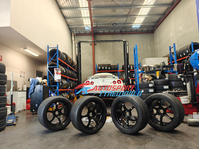 Premium performance upgrade featuring Advan Racing R6 forged wheels and Michelin PS4S tyres, professionally installed by Autosport Tyreworld.