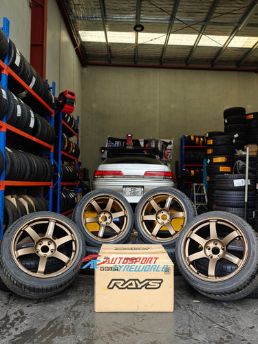 Toyota Chaser upgraded at Autosport Tyreworld with Rays TE37 SAGA Blast Bronze wheels and Michelin PS5 235/40R18 tyres for improved grip, handling, and premium JDM styling.