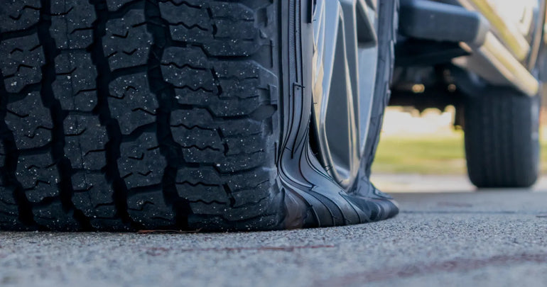 Pull over safely and avoid driving on a flat—heat builds fast and ruins the casing.
